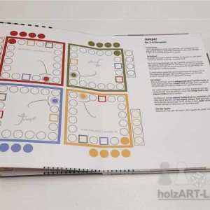 Neben jedem Spiel ist auch die zugehörige Spielanleitung abgedruckt - und auch, welche Figuren und welche Würfel zu verwenden sind. (Das ist auf den Bildern, die die Vorversion zeigen, noch nicht zu sehen).